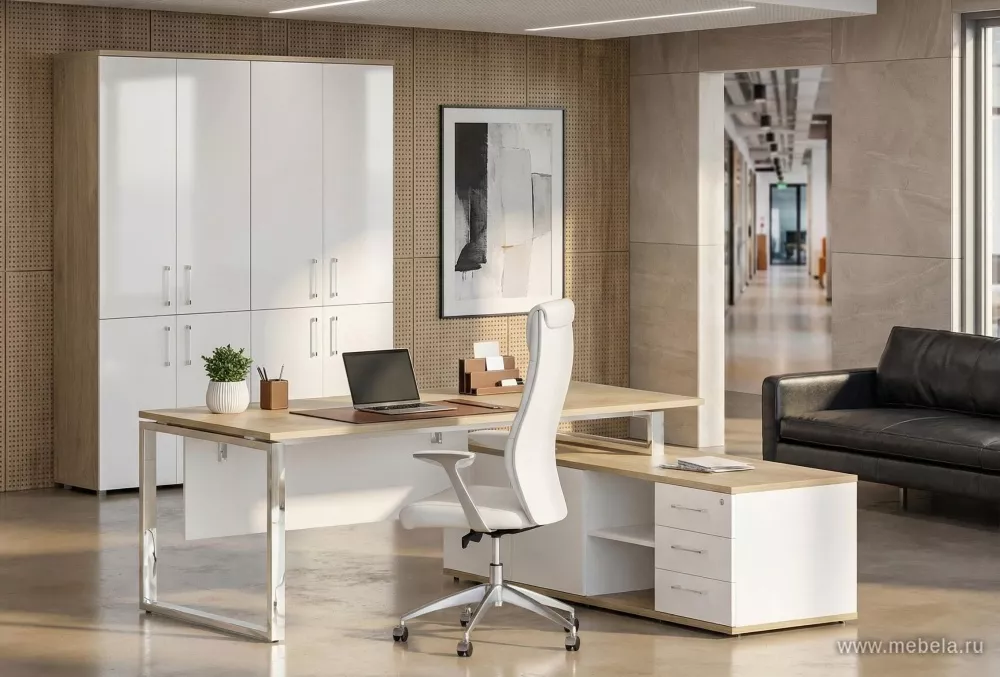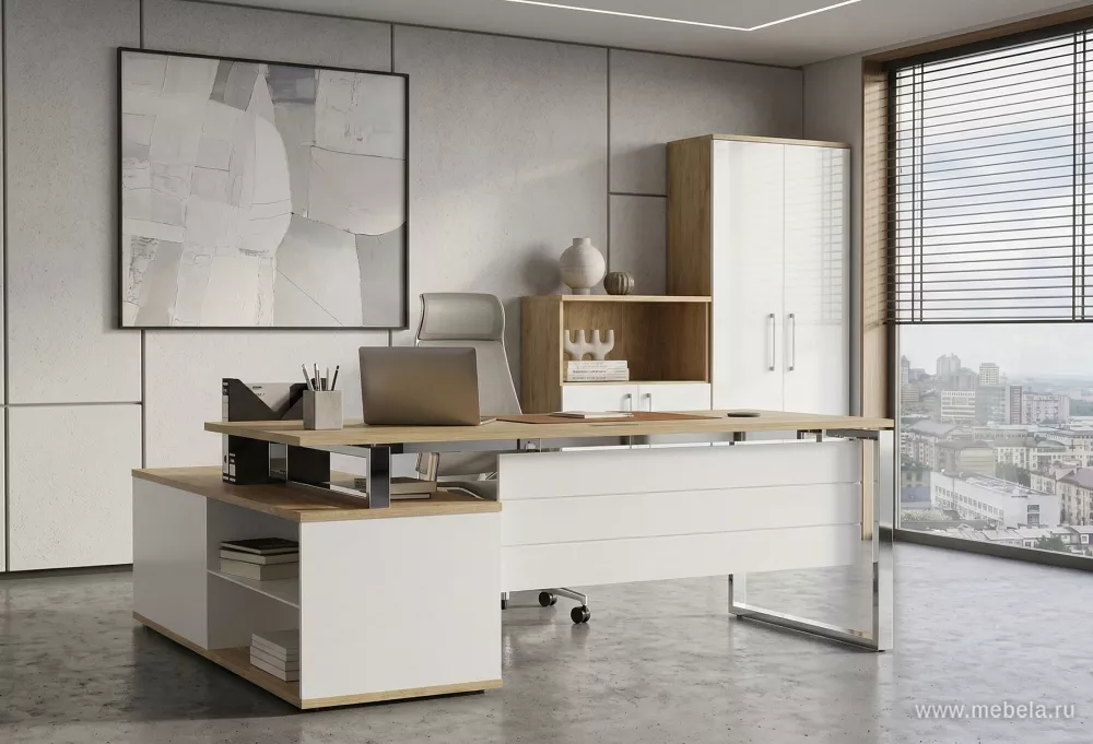 Наполненный светом, теплом привлекательной структуры тикового дерева, оттененный строгостью металлических элементов, кабинет руководителя Шифт Хром притягивает взгляд и поражает продуманной эргономичностью. Качественные материалы, функциональные модули в стиле хай-тек создают современное рабочее пространство.