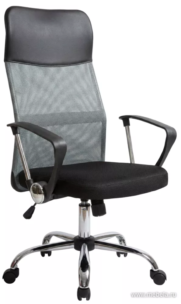 кресло офисное RV-8074, серая сетка / чёрная ткань